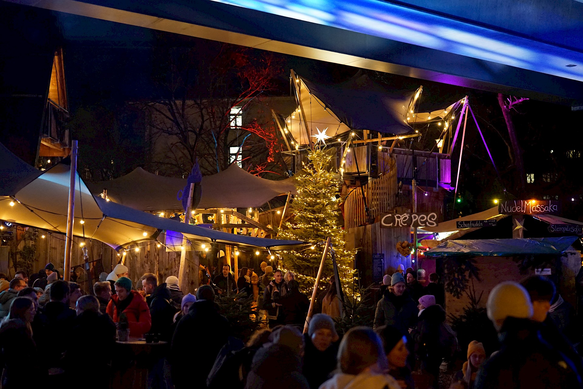 Un certain nombre d'événements qui s'inscrivent plutôt dans le prolongement des offres culinaires proposées tout au long de l'année et qui incluent du vin chaud sont également souvent comptés parmi les marchés de Noël. Il s'agit notamment des événements atmosphériques organisés par les frères Hahn tout au long de l'année. Bahnwärter Thiel a son Mondscheinexpress, Alte Utting a son Sternenflotte, Gans am Wasser a son Winterzauber et Gans Woanders a son Winterrausch. Ce dernier mérite une mention spéciale, non seulement parce qu'il commence le 14 novembre, mais aussi parce qu'il élargit considérablement la zone autour de la maison de sorcière.